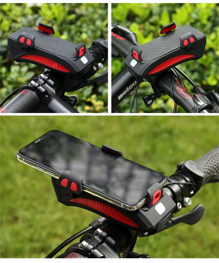 Велосипедный светильник Цвет черный/синий/красный/оранжевый Аккумулятор 2000 мАч/4000 мАч Размеры 13*4,5*5 см Яркий 400 люмен Звуковой сигнал модели 5 Объем 130 децибел Функция USB зарядки Время работы 5-10 часов Подходит для телефона 4-6,3 дюймов Светильник яркий/низкий светильник/мигающий Светодиодный светильник * 3 Водонепроницаемый нормальный Подходит для велосипеда MTB/шоссейного велосипеда
