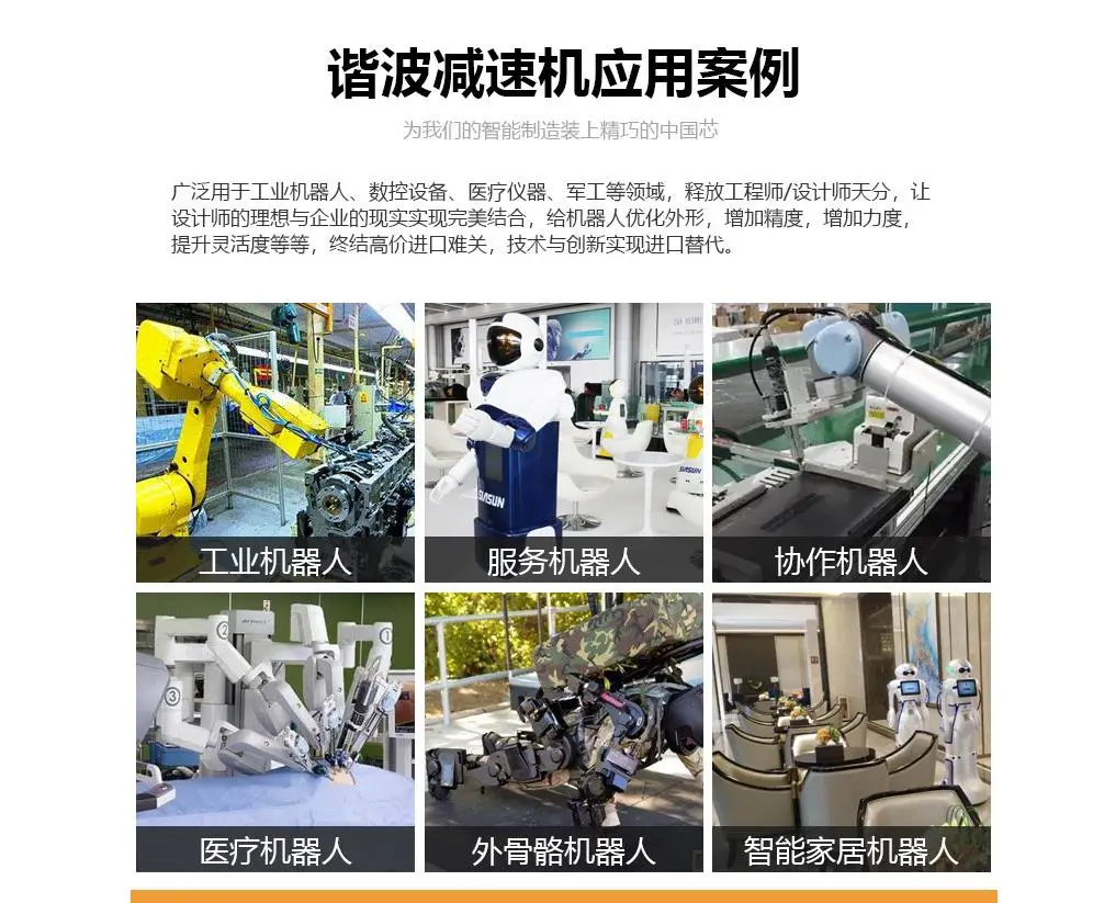 Широкий спектр применения в электронной промышленности, промышленной автоматизации, промышленных роботов, упаковочных машин, печатных машин и медицинского оборудования из-за высокой точности, высокой жесткости и высокой передаточной способности.