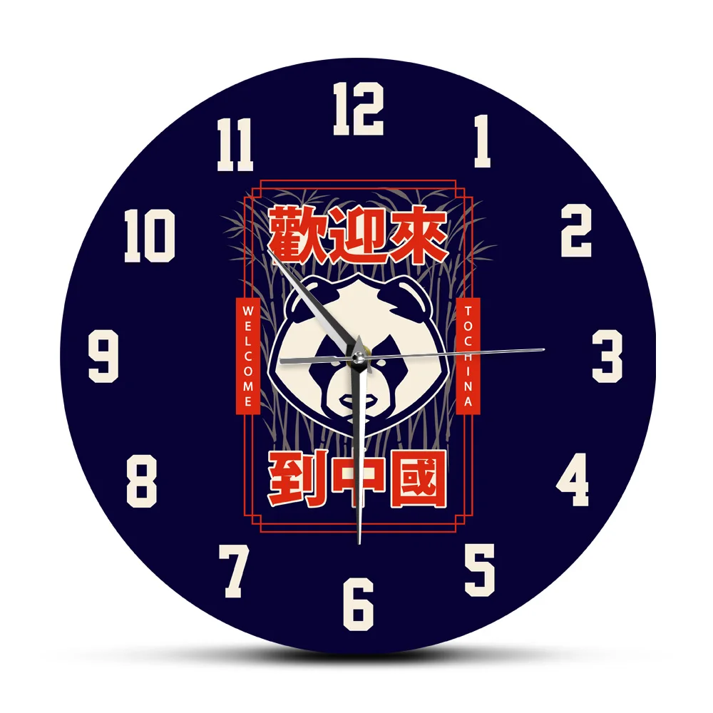 Настенные кварцевые часы с изображением головы панды и китайских животных -