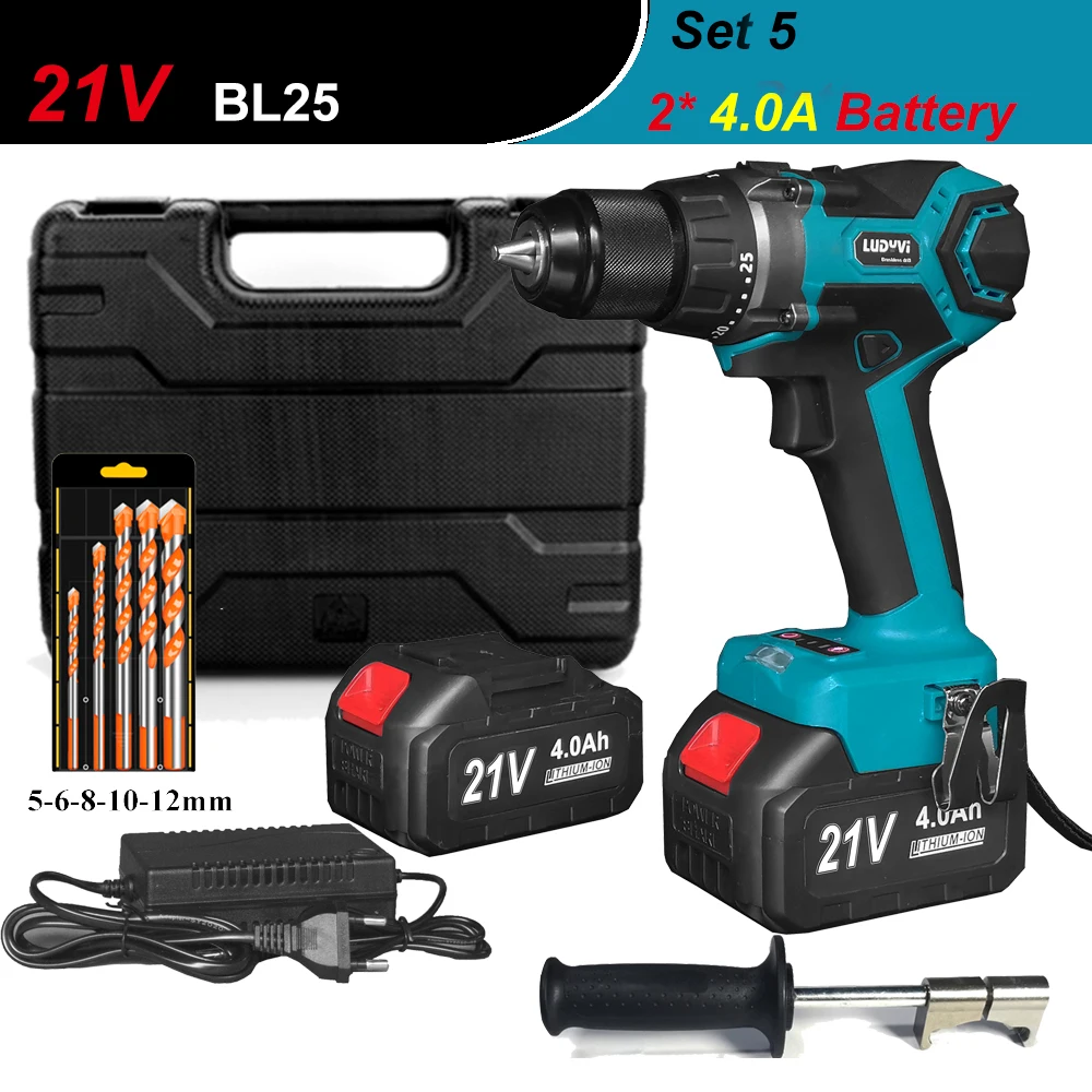 Функция: Ударная дрель, молотковая дрель, отвертка 3 в 1 Максимальный крутящий момент: 110 Н/м Без скорости нагрузки: 0-500/0-1800 об/мин Крутящий момент: 25 + 3 Скорость удара: 2 скорости (высокая/низкая) Применение: сталь/дерево/бетон Максимальный диаметр сверла: Сталь: 13 мм Дерево: 38 мм Бетон: 14 мм Частота: 50-60 Гц Тип двигателя: бесщеточный двигатель (более длительный срок службы и большая мощность) Размер патрона: 13 мм (металлический патрон) Масса электрической дрели: 1222 г (не включая батарею) Масса электрической дрели: 1786 г (включая батарею)