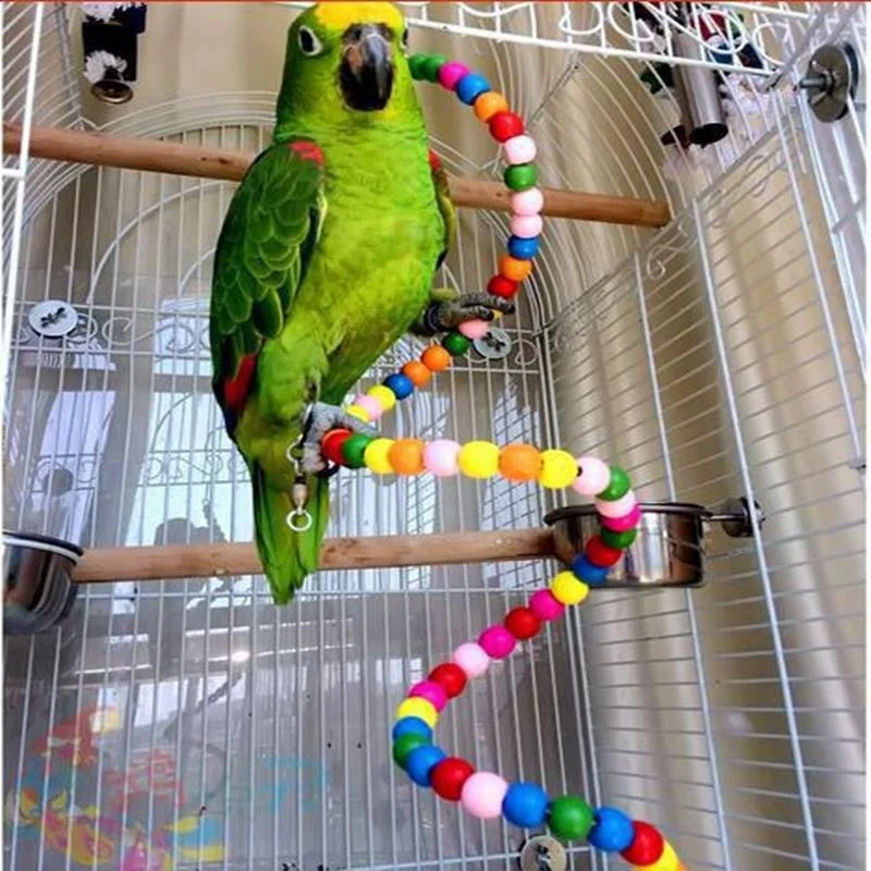 Разноцветные деревянные бусины попугай качели клетка птица спиральная лестница попугай укусы игрушка