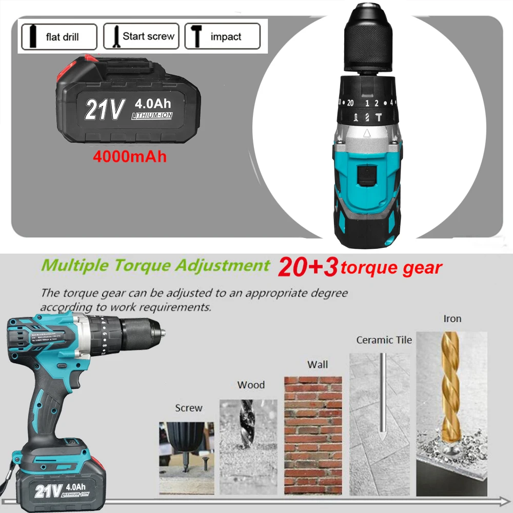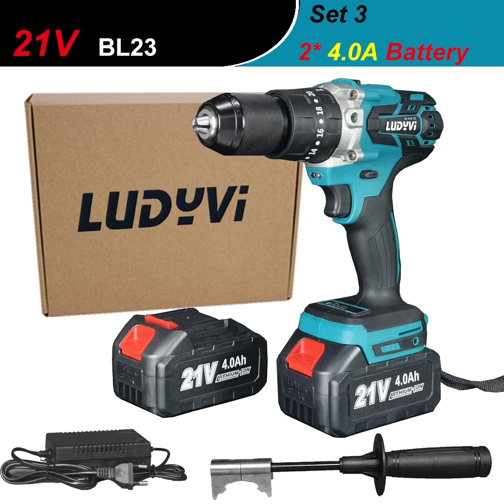 21V бесщеточный Электрический шуруповерт Мощность Фул 115N/м 13 мм Ударная дрель