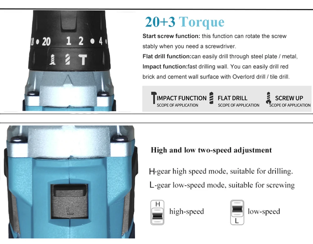 Ударная функция, быстрая буровая стена. Вы можете легко сверлить поверхность стен из красного кирпича и цемента с помощью сверла/дрели для плитки.