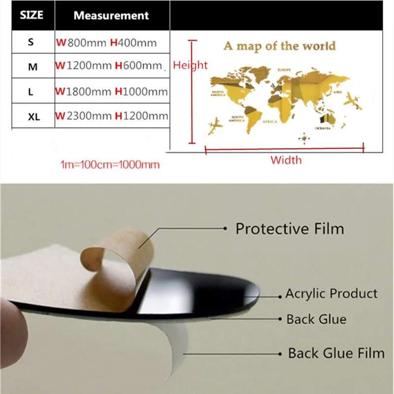 Название товара: настенные наклейки с картой мира Узор: карта мира Материал: акрил Цвета: 3 цвета Применение: Очистите стены или любую другую ровную поверхность Размер: S (Ш * В): около 0,8*0,4 м; М (Ш * В): около 1,2*0,6 м; Д (Ш * В): около 1,8*1 м; XL (Ш * В): около 2,3*1,2 м; Примечание: 1. Не представляйте размер, пожалуйста, внимательно проверьте размер стены и размер наклейки. 2. Для установки мы добавляем Бумажный шаблон в коробку, его изгиб и поломка не относятся к проблеме качества. 3. Установка этой настенной наклейки занимает время, для 3 человек для ее завершения потребуется около 3-5 часов!