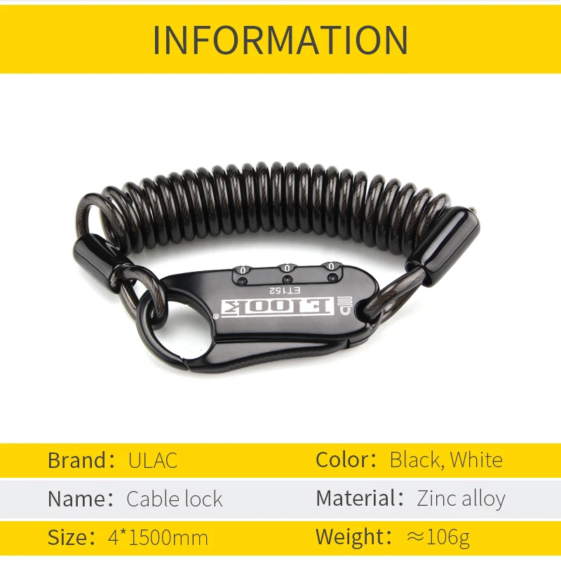 * Удобный размер, легко хранить и переносить; * 3 х значный кодовый, безопасность и простота в эксплуатации; * Многофункциональный, не только для велосипедов, шлемов, багажных замков, замок рюкзака... * ETOOK, Лидирующий бренд на замке.