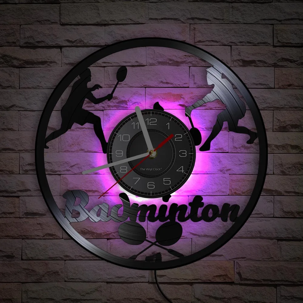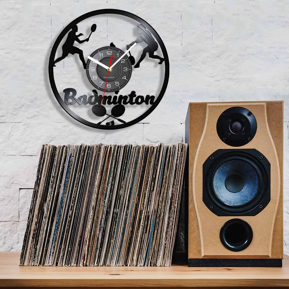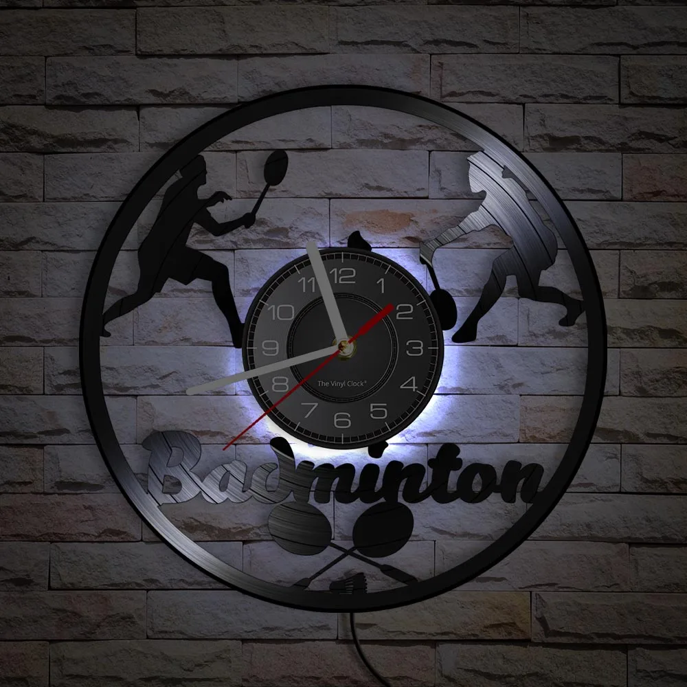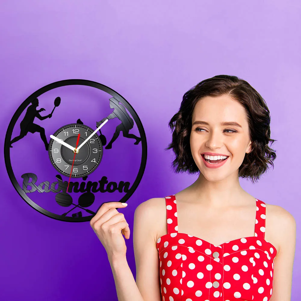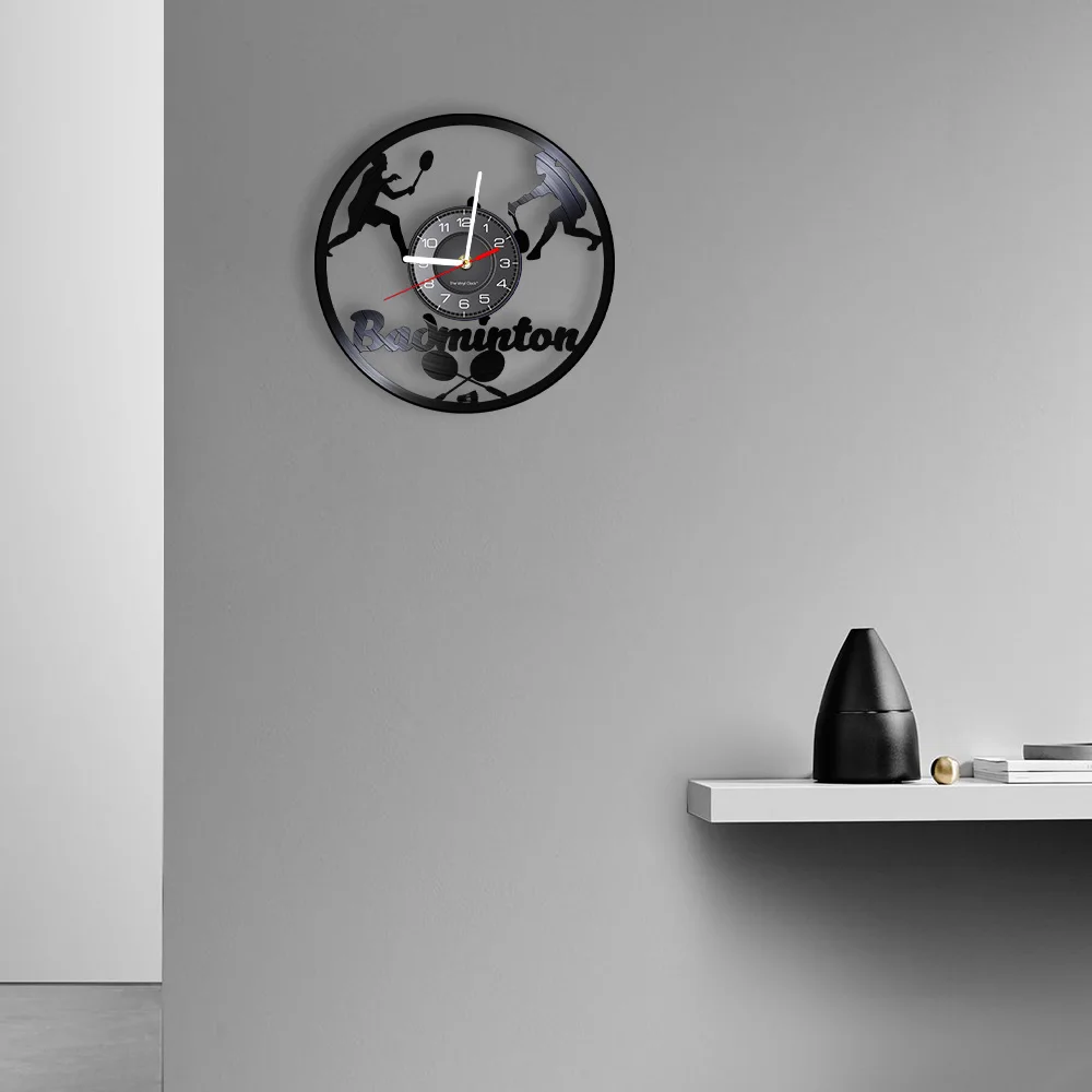 Современные настенные часы для бадминтона черные спортивные виниловые с