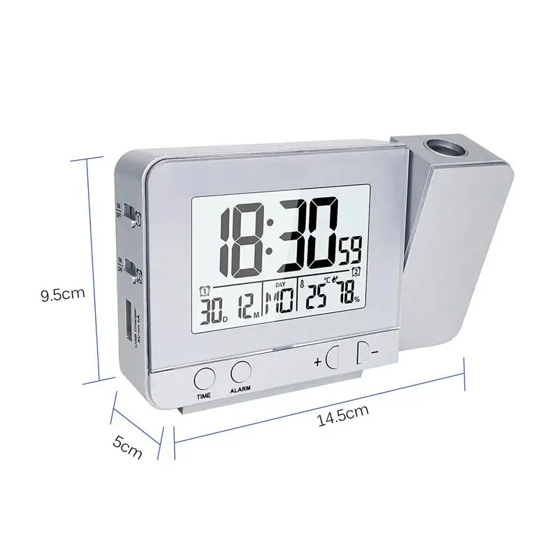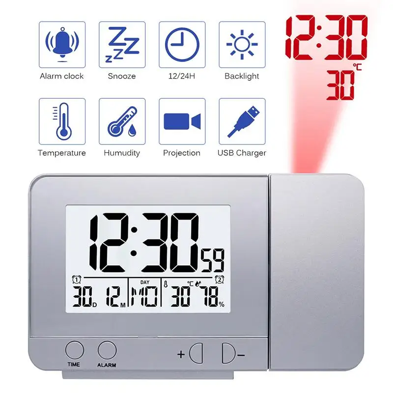 Многофункциональные будильник показывают следующие функции: время, дата, двойные часы, температура, humudity и т. Д.