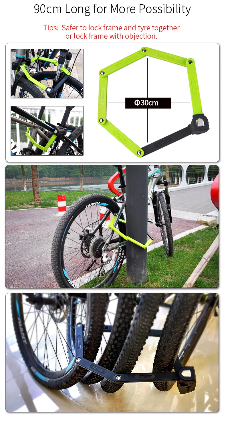 Бренд: ETOOK Название продукта: складной Длина замка: S-75cm L-90cm Вес: S-917g L-1052g Толщина: 5 мм Материал: Закаленный Стальной сплав (с термообработкой) цилиндр замка: Швейцарская Технология ключ: уровень безопасности из медно-никелевого сплава 4 уровня (анти-Профессиональный вор, длительный период в ночное время)