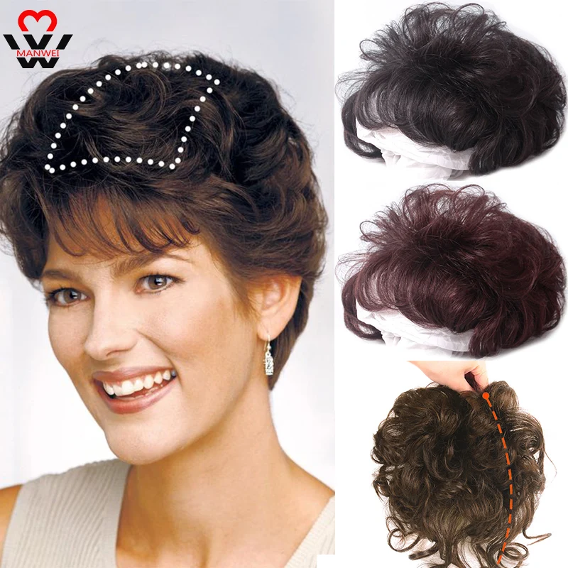MANWEI короткий волнистый синтетический Топпер для волос с челкой наращивания