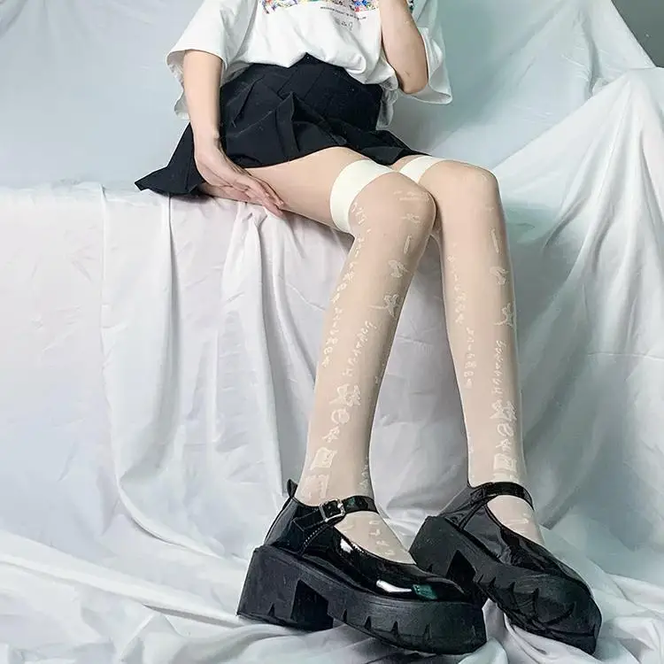Женские сексуальные японские колготки с буквенным принтом, необычные татуировки с рисунком, бесшовные шелковистые колготки, готические панк чулки в сетку