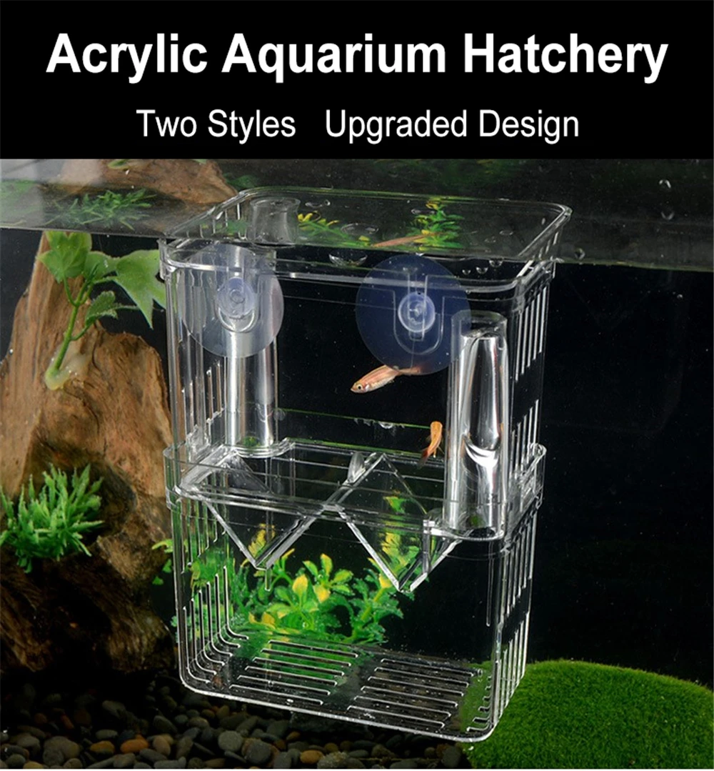 Акриловый инкубатор для аквариума, прозрачный инкубатор для аквариума с присоской, коробка для разведения рыбы для маленьких рыб, креветки, клоуны, Гаппи, аксессуары для аквариума
