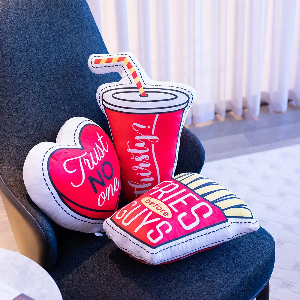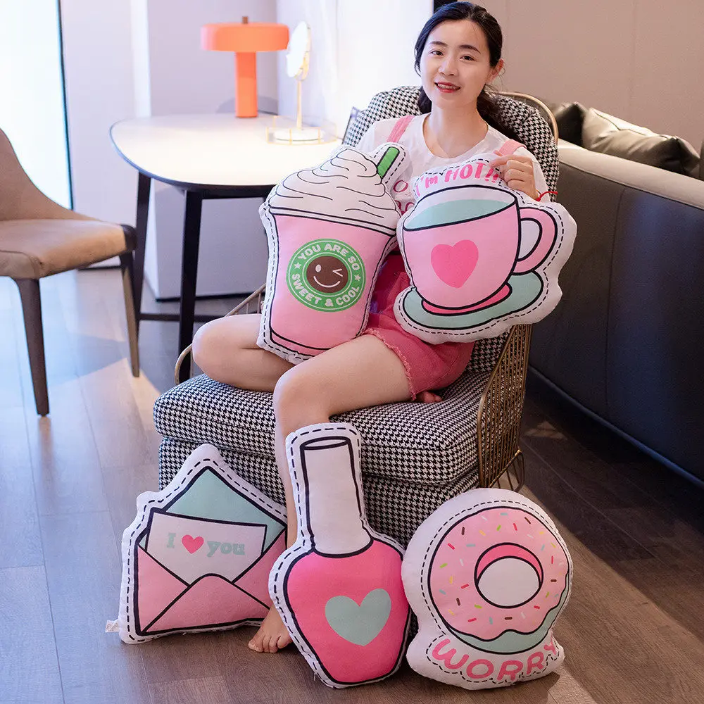 Плюшевые подушки INS с печатными изображениями, наполненные хлопком PP, изображающие еду и напитки: фламинго, пончик, леденец, для декорирования комнаты девочек, размером 50-60 см.