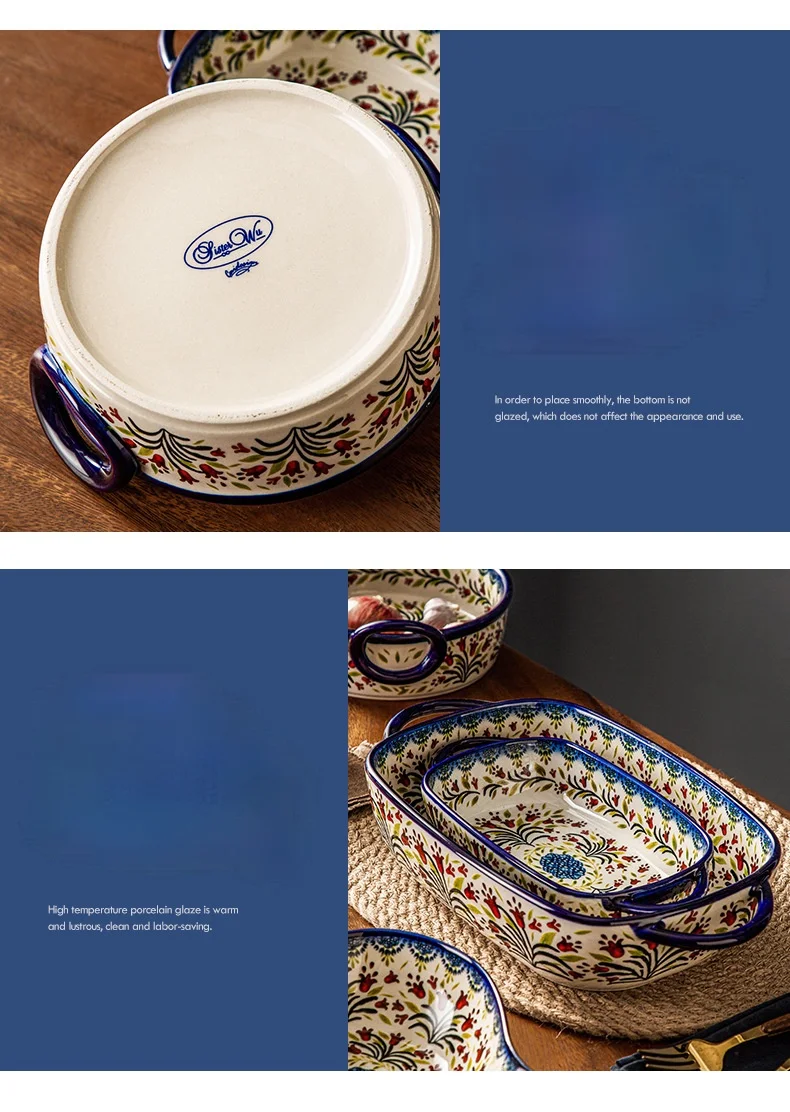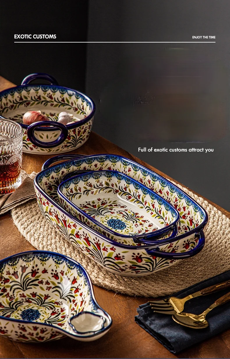 Форма для выпечки в польском стиле тарелка супа с двумя ушками керамическая