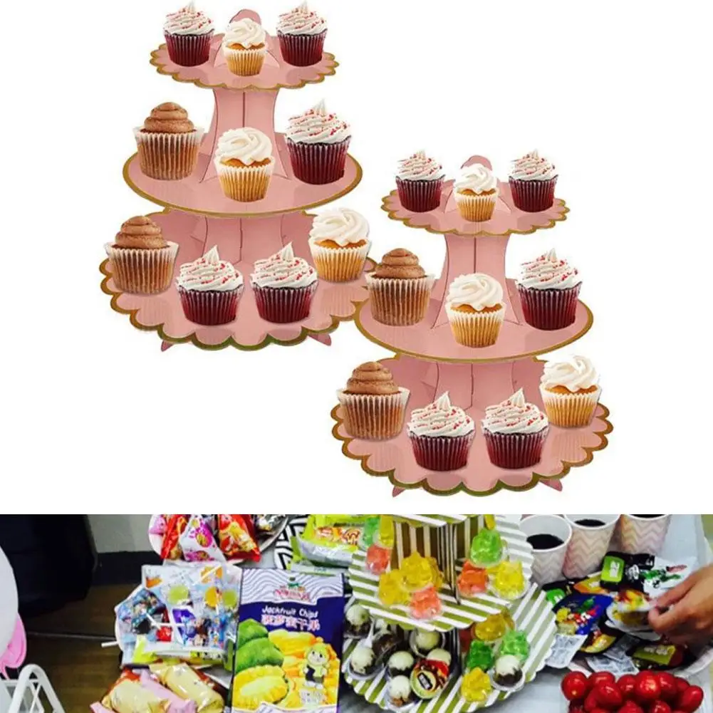 3-слойная подставка для кексов Круглая картонная складная дня рождения свадьбы