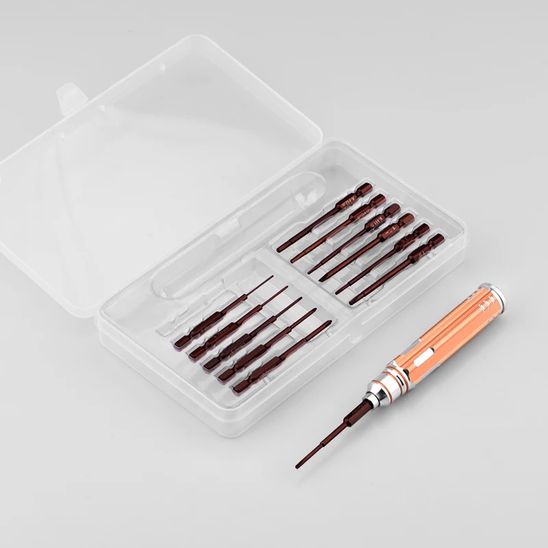 Характеристики отверток: Шесть звезд T6/T9; Аллен h1.5мм, h2.0мм, h2.5мм; Phillips 1,0 мм/1,3 мм/1,5 мм/2,0 мм/2,5 мм; flathead 1,5 мм; Пластина Phillips 0,6 мм