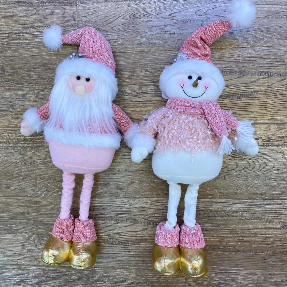Розовые эластичные стоячие куклы Санта-Клауса и Снеговика из плюша как новогодние украшения для дома и подарки на Новый год 2023.