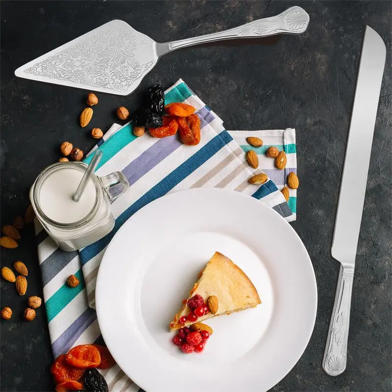 Долговечный KEEPSAKE: Этот набор для торта специально разработан, никогда не выйдет из стиля. Изготовлено из высококачественной нержавеющей стали, этот набор для резки тортов может быть сохранен долго после окончания большого дня. Продолжайте использовать для будущих юбилейных вечеринок, дней рождения и особых случаев.
