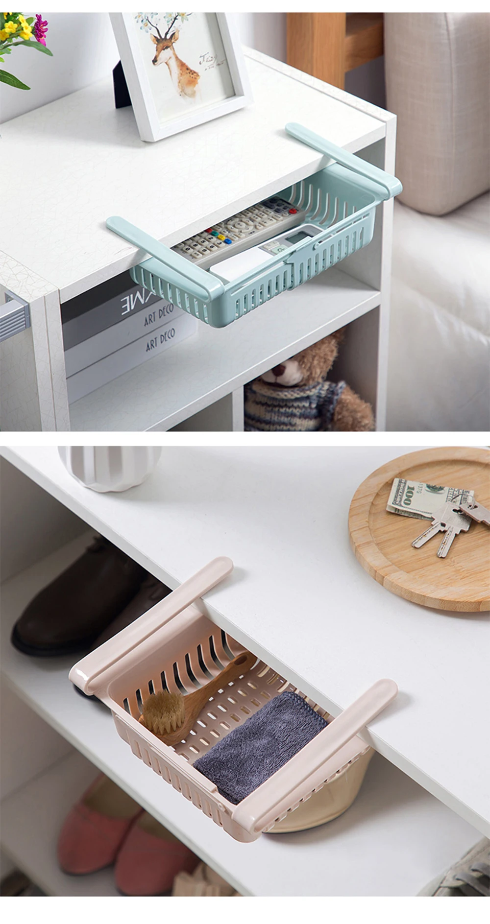 Регулируемая растягивающаяся корзина с маленьким выдвижным ящиком декоративная
