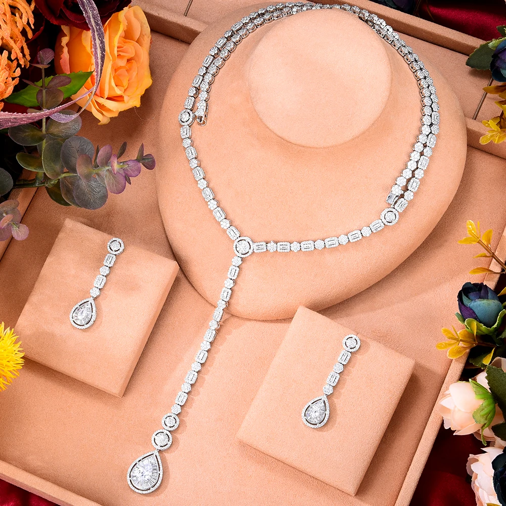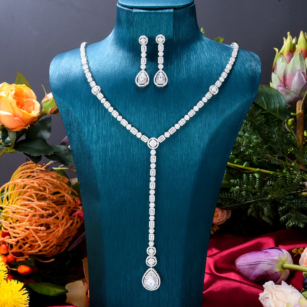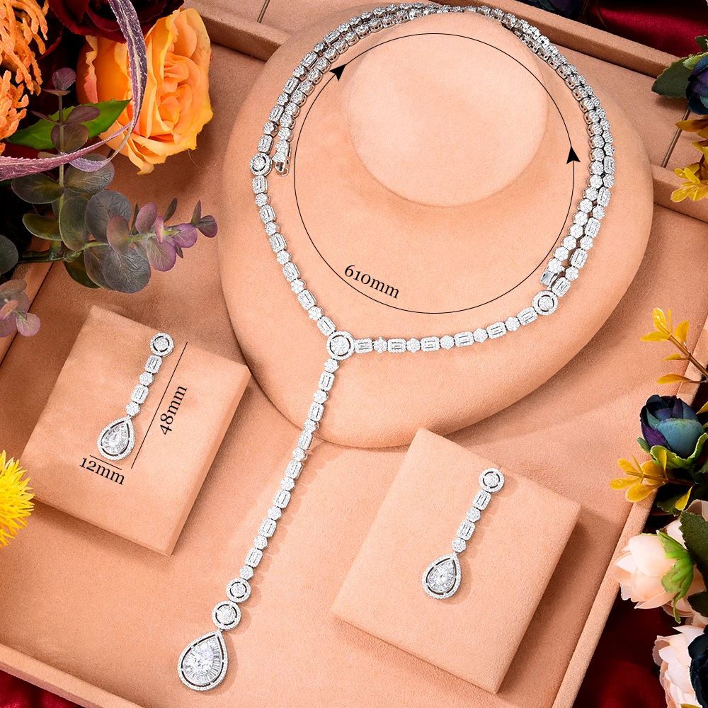 Набор украшений GODKI Tremdy New Gorgeous Sparkly Luxury Long Necklace Earrings для благородных невест.