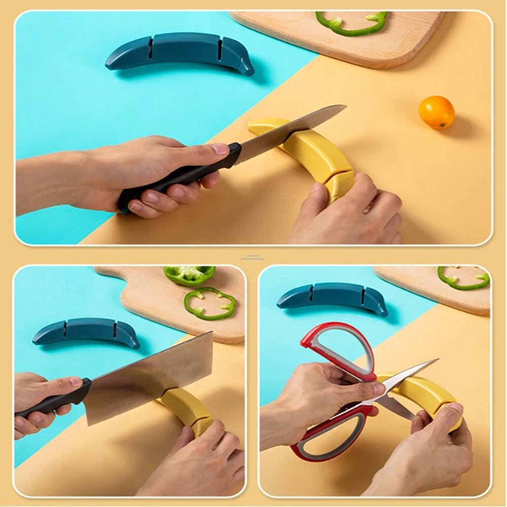 Легко использовать и быстро затачивать лезвие. Тело банана имеет 2 точильных узла, которые могут быть заточены трением по желанию