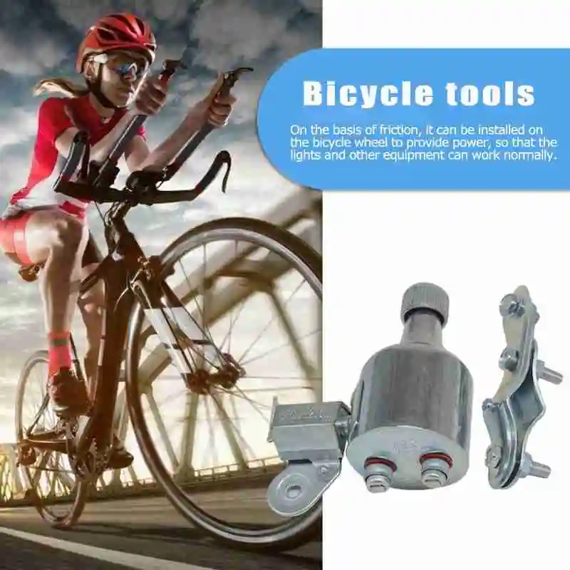 На основе трения, он может быть установлен на велосипедном колесе, чтобы обеспечить питание, так что огни и другое оборудование могут работать нормально.