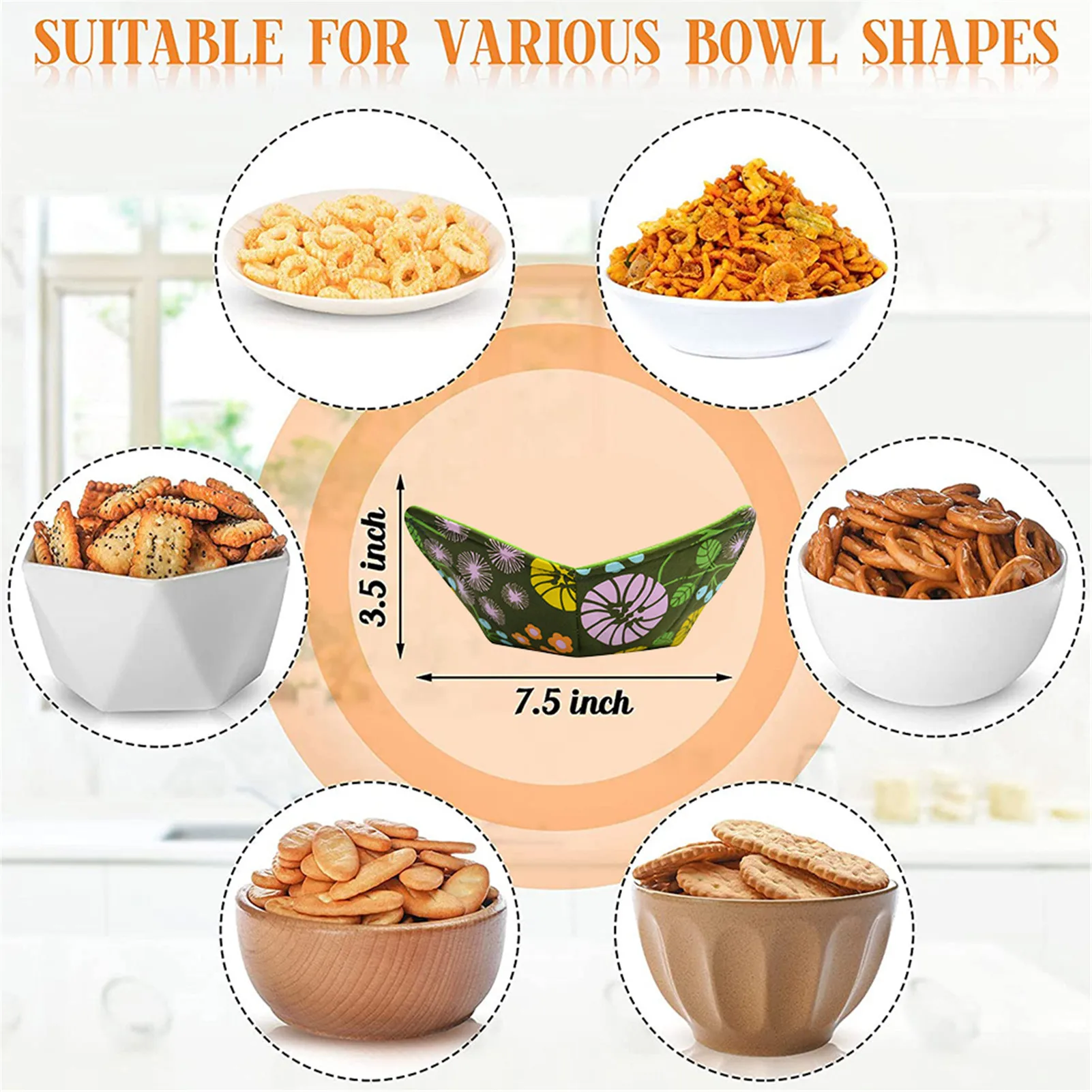 3、Reusable and Durable: Each microwave bowl hugger is made of soft microfiber cloth and thick sponge with strong stitching to ensure the material won't tear even if reused, so it is reusable and durable.