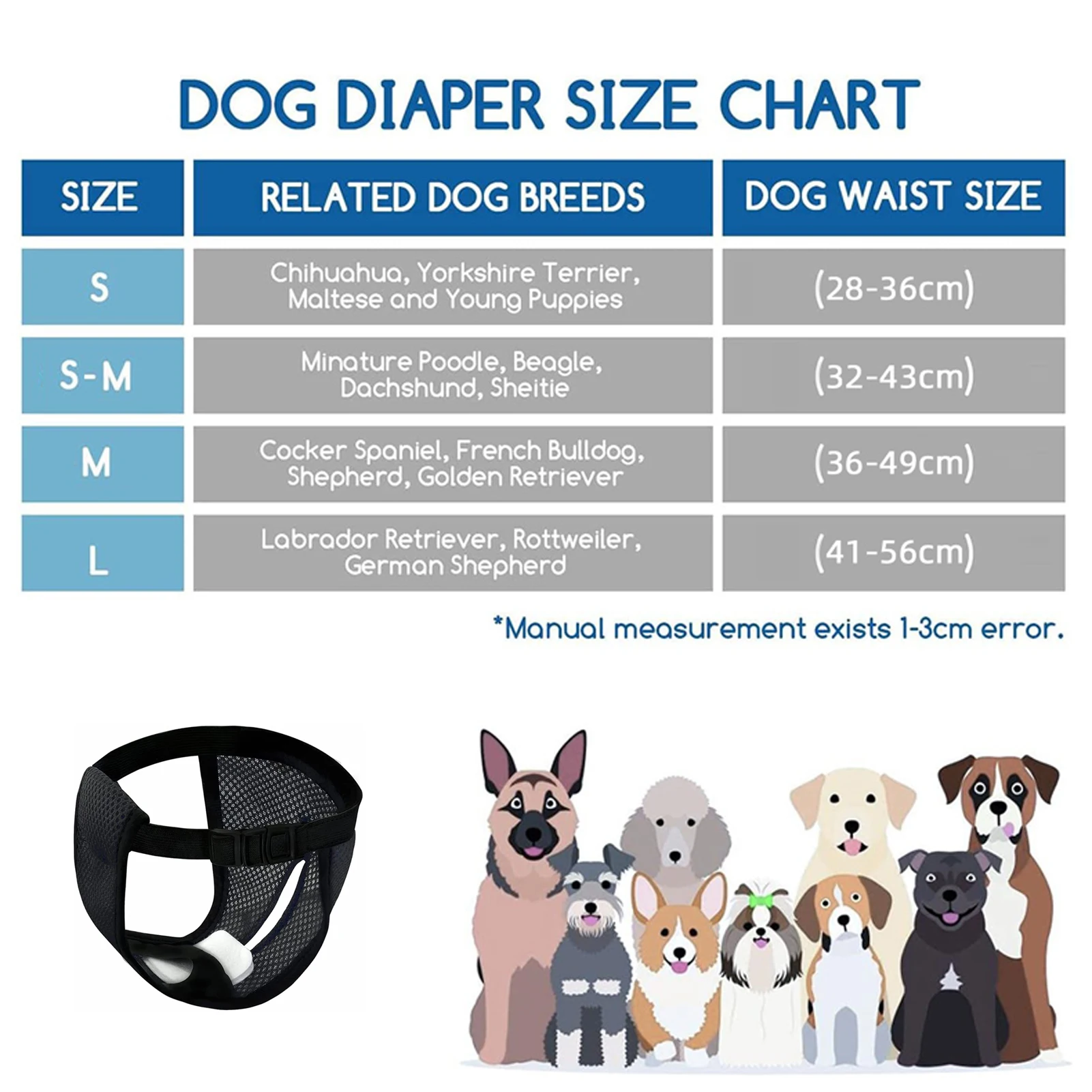 5. Все размеры на выбор: Подгузники для домашних животных разработаны с несколькими размерами S/M/L/XL для вас на выбор, который оснащен 3 заменами хлопка для повторного использования, для удовлетворения различных потребностей собак разные размеры.