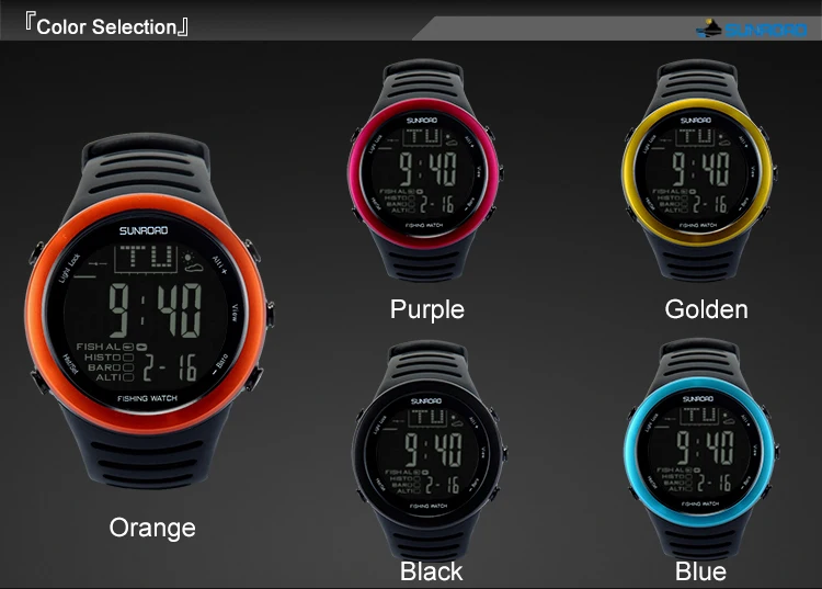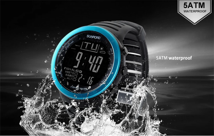 SUNROAD FR720 цифровые часы для рыбалки спортивные наручные часы барометр водонепроницаемые высотомер Секундомер для пешего туризма Swmming прогноз погоды