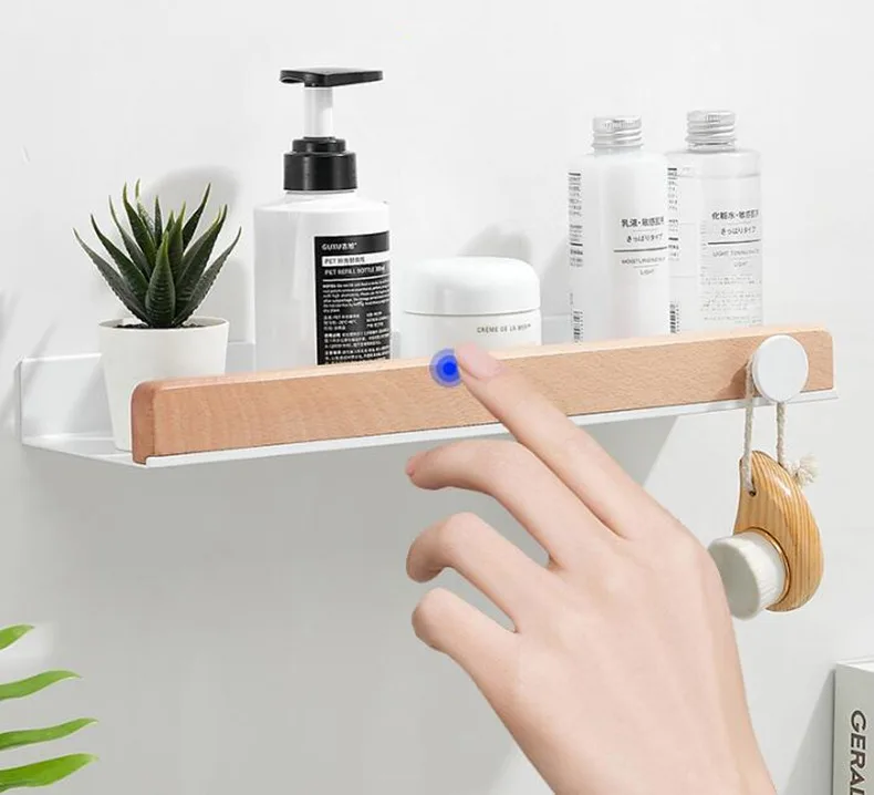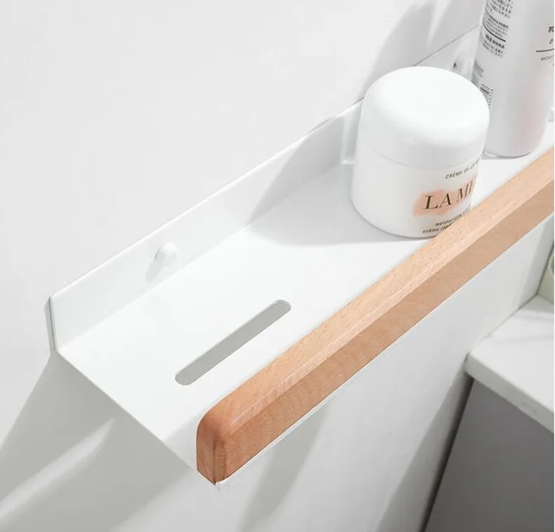 Белая стойка для хранения на стену для туалета, без перфорации, из массива дерева, полка для ванной комнаты.