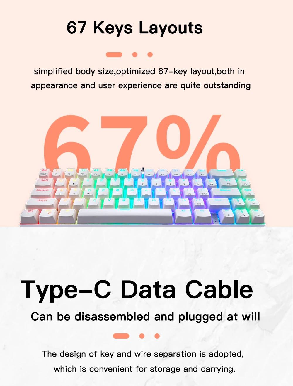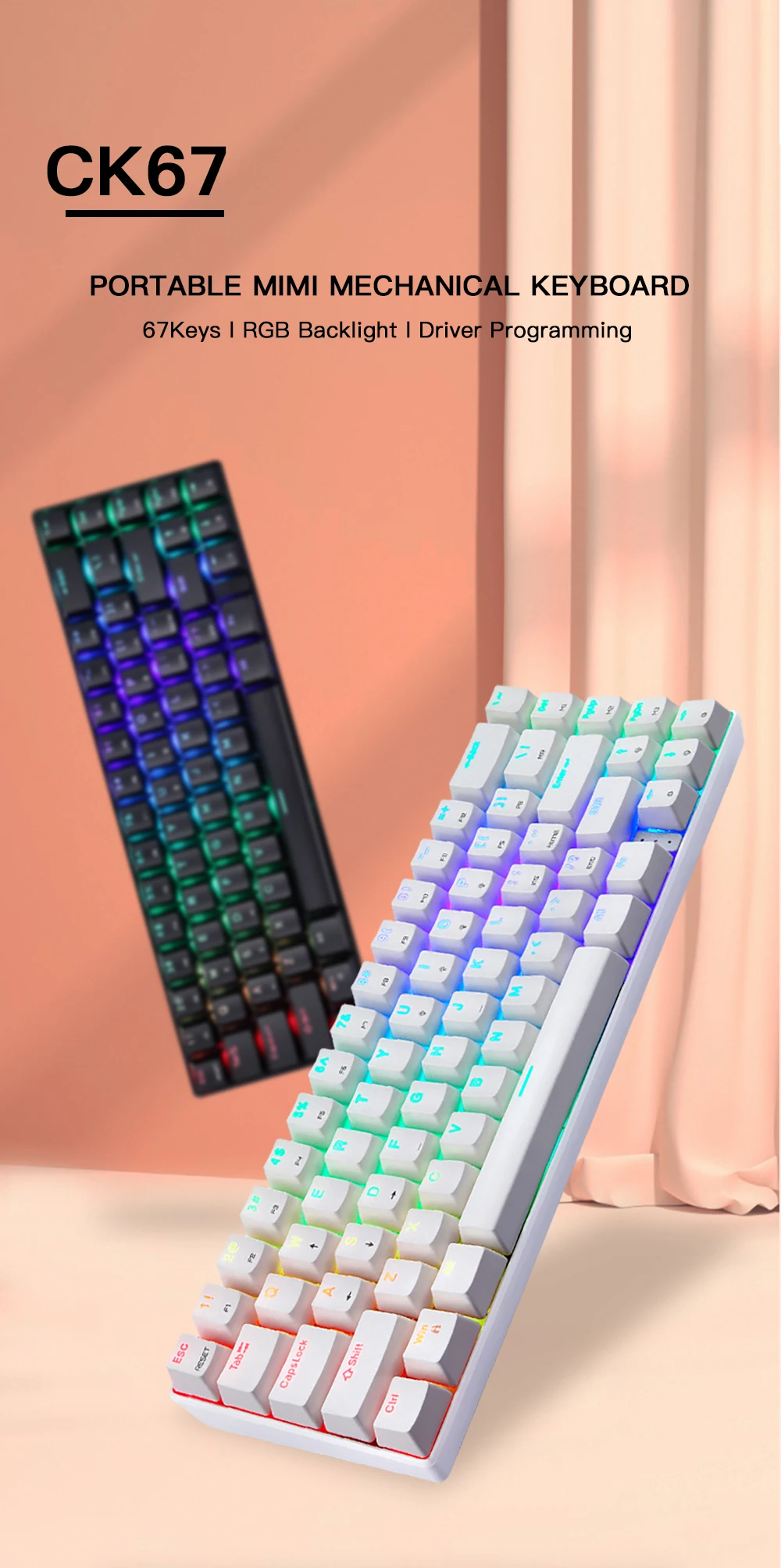 Механическая игровая клавиатура Motospeed CK67 Проводная для офиса с красной синей