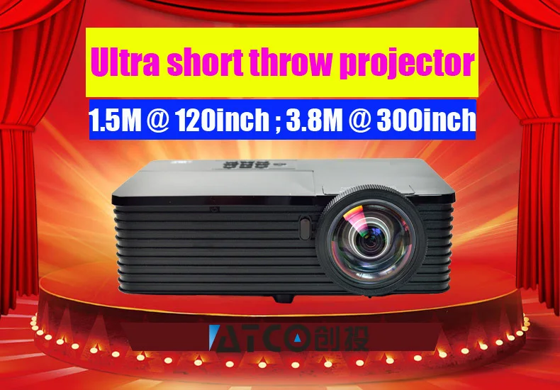ATCO Short Throw 300 inch 6000 Люмен DLP Голограмма 3D Проектор HD ПК USB VGA Переход 1080 P Заднего