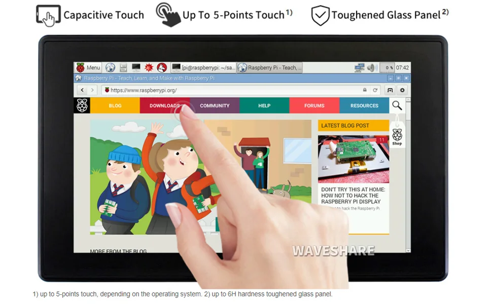 Поддерживает Raspbian, 10 точек касания, драйвер бесплатно