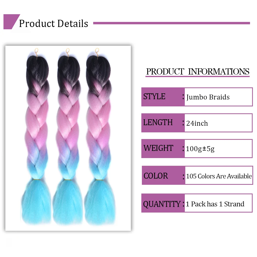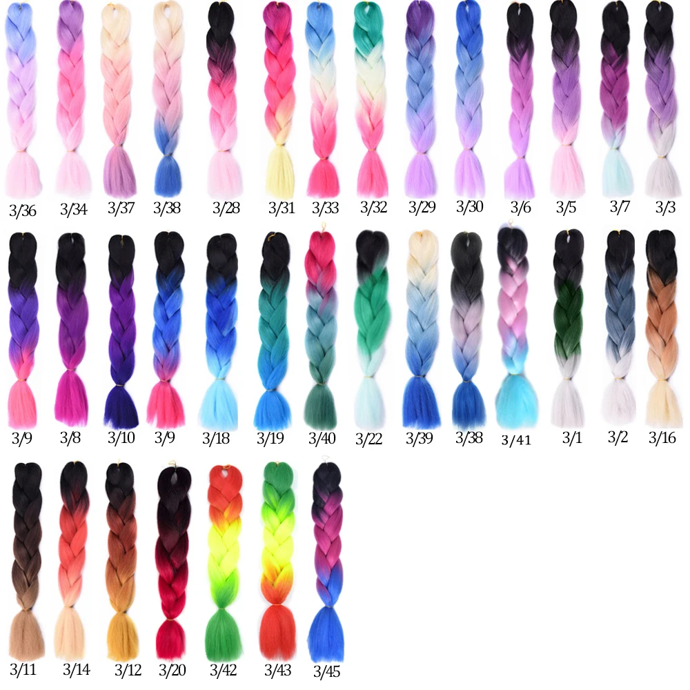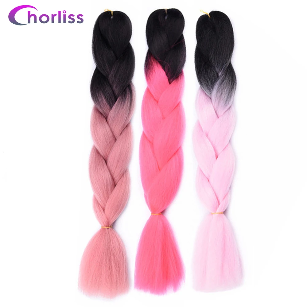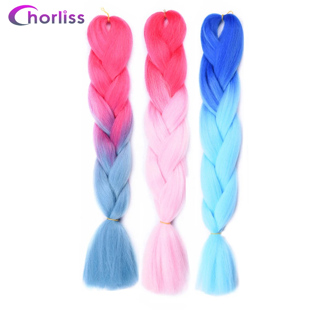Chorliss 24 "омбре плетеные пряди волос Синтетические вязаные для наращивания Высокая температура волокна Джамбо косички черный/зеленый/синий