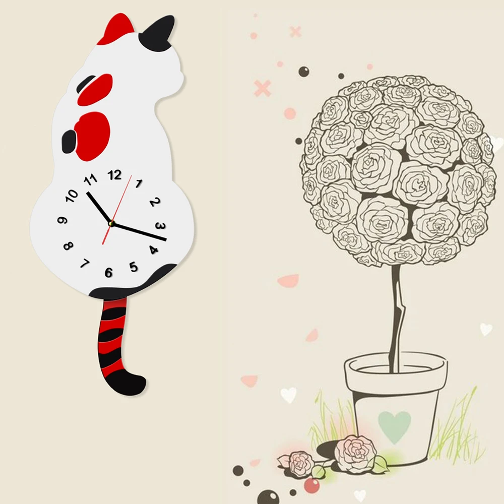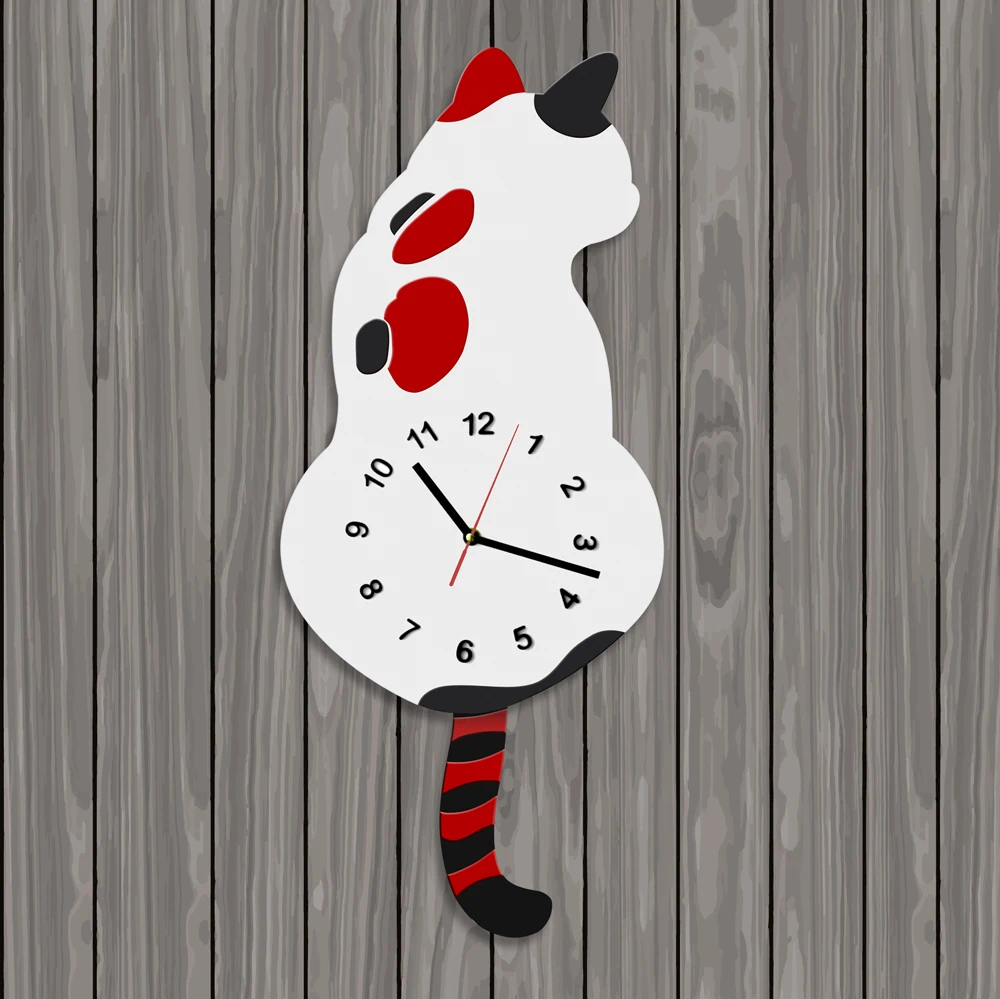 Японские Настенные часы с хвостом кошки для спальни белые кошачьи современный