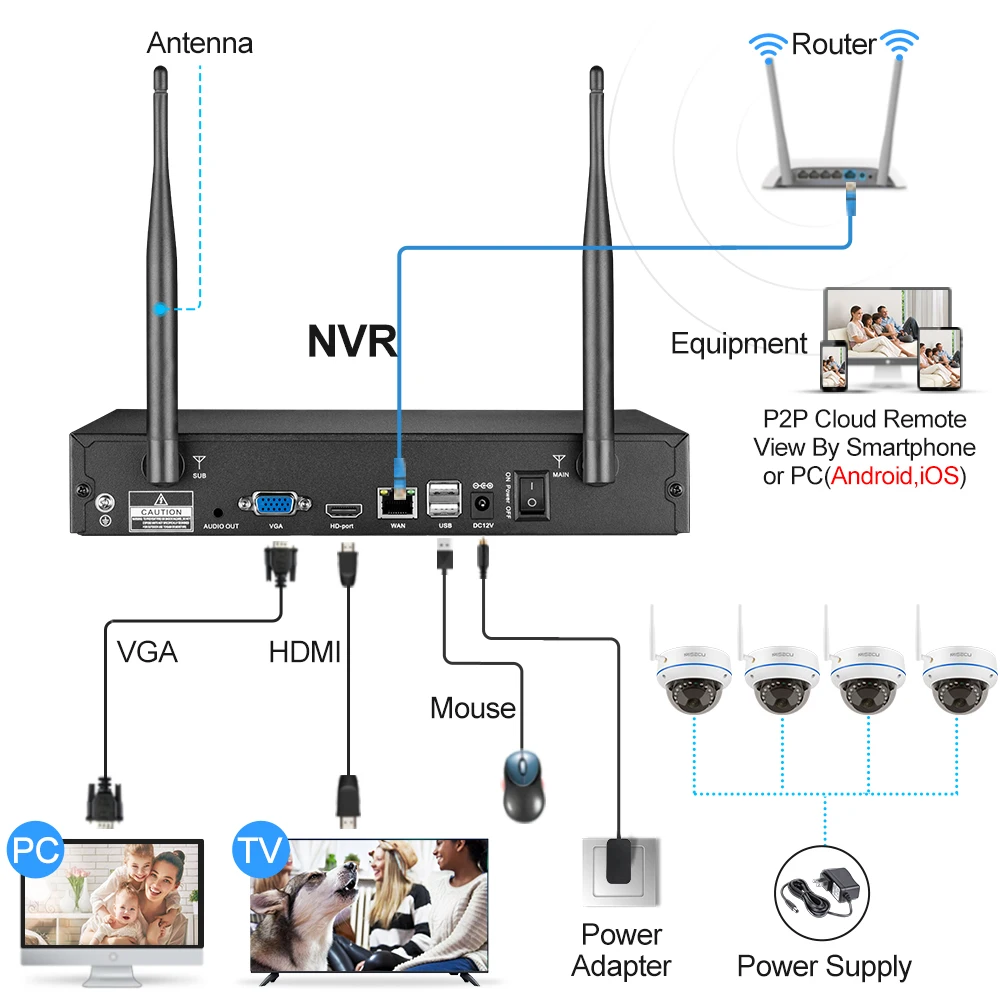 MISECU 8CH NVR Ультра HD 3MP CCTV Беспроводная система аудио запись открытый Крытый Wifi IP