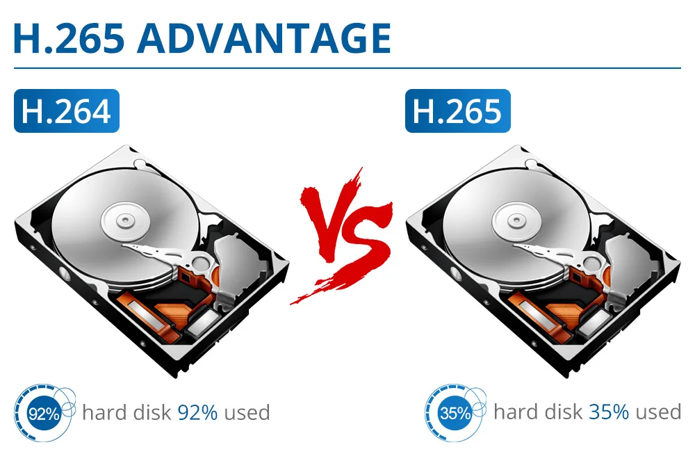 H.265 более четкий, HD разрешение предлагает вам лучшее качество изображения в более низкой скорости. Экономьте больше места для хранения, вы можете уменьшить размер файлов 40%-50%, сэкономить место для хранения HDD и снизить стоимость покупки.