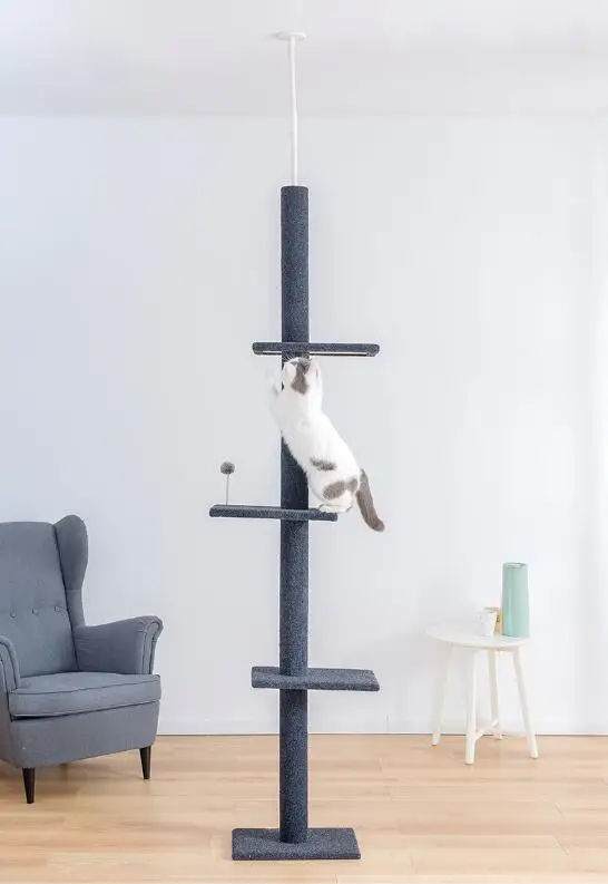 ·Стабильная и долговечная: не беспокойтесь о том, что ваш кошачий Кот настолько высок, потому что это кошачье дерево имеет регулируемую пружину наверху, которая сохраняет его стабильным между вашим полом и потолком, для безопасной, стабильной среды.