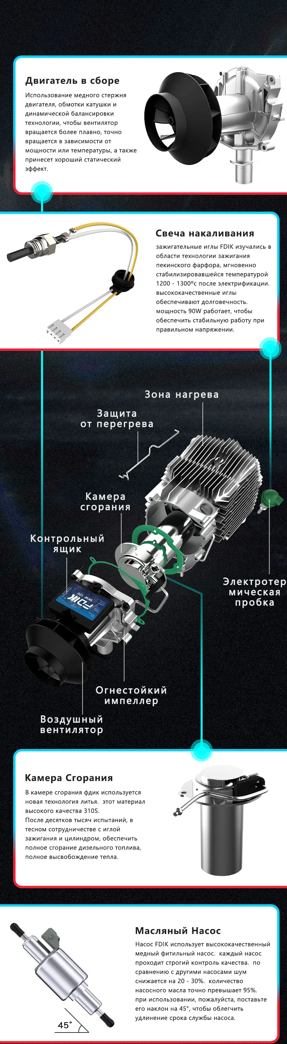 FDIK. Автономный дизельный воздушный отопитель салона. Автономка для грузовика