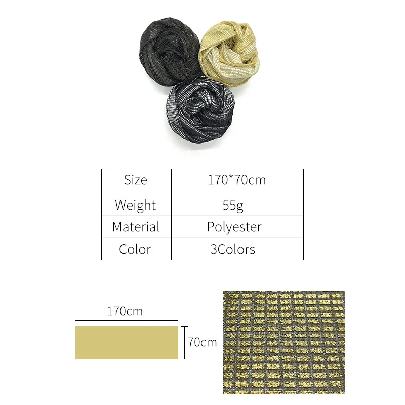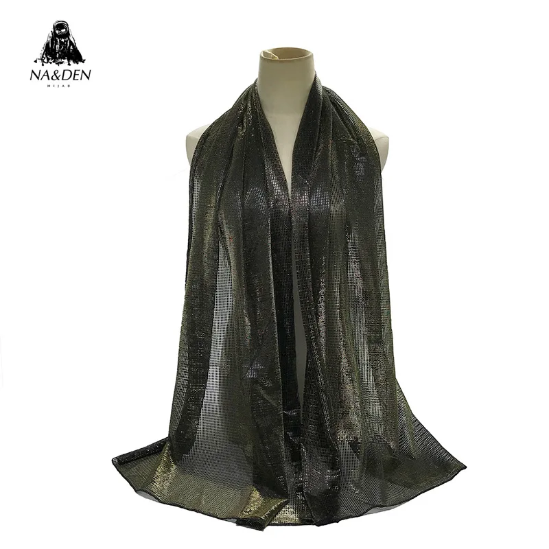 Мусульманская женская шаль платок хиджаб шарф блестящая золотая пряжа исламский