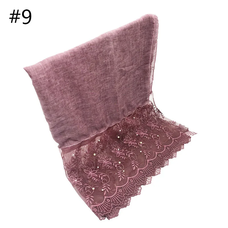 Модный женский кружевной хиджаб с жемчугом шарф 2020 мусульманский простой хлопковый цветочный кружевной платок хиджаб платок