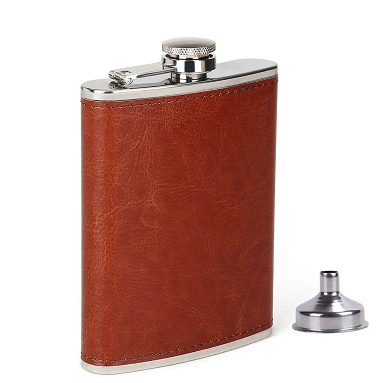 Портативная карманная фляжка из коричневой кожи 8 унций питьевая нержавеющая