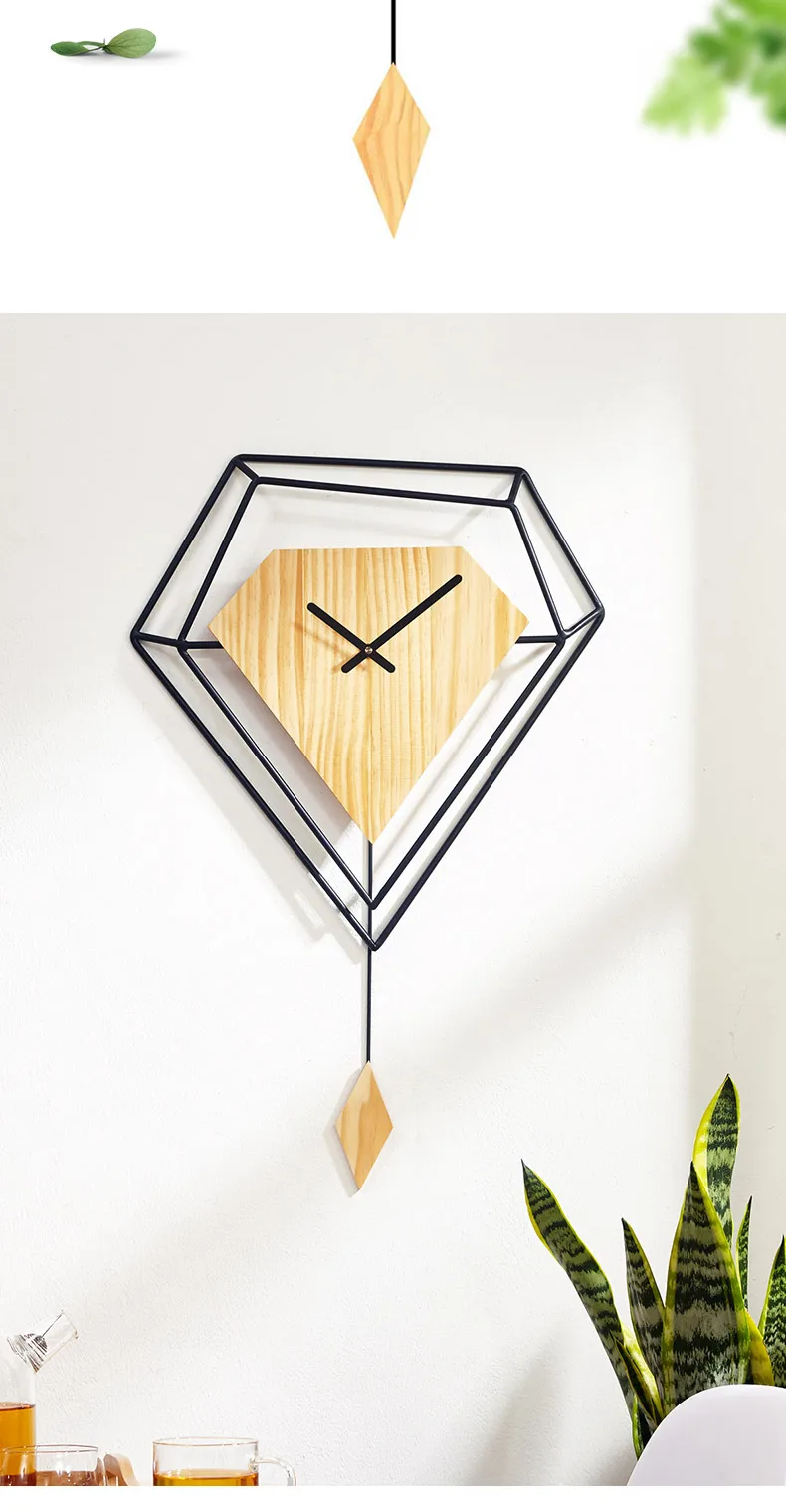 Большие маятниковые настенные часы Металлические геометрические креативные