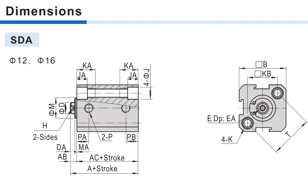 Пневматический цилиндр двойного действия AIRTAC типа SDA SDA12 5 10 15 20 25 30 35 40 45 50 S B