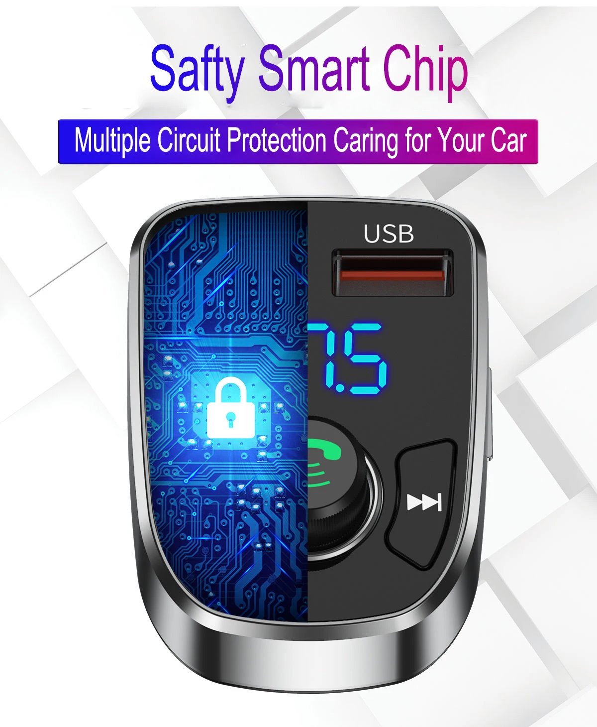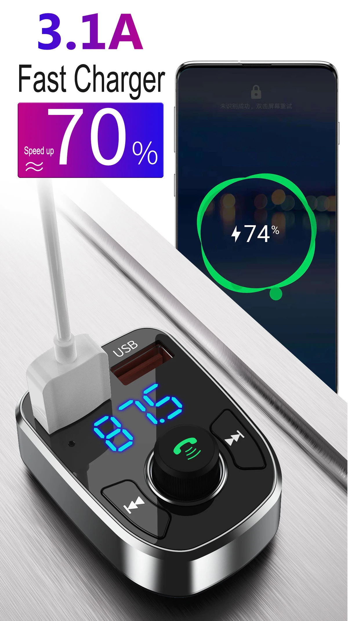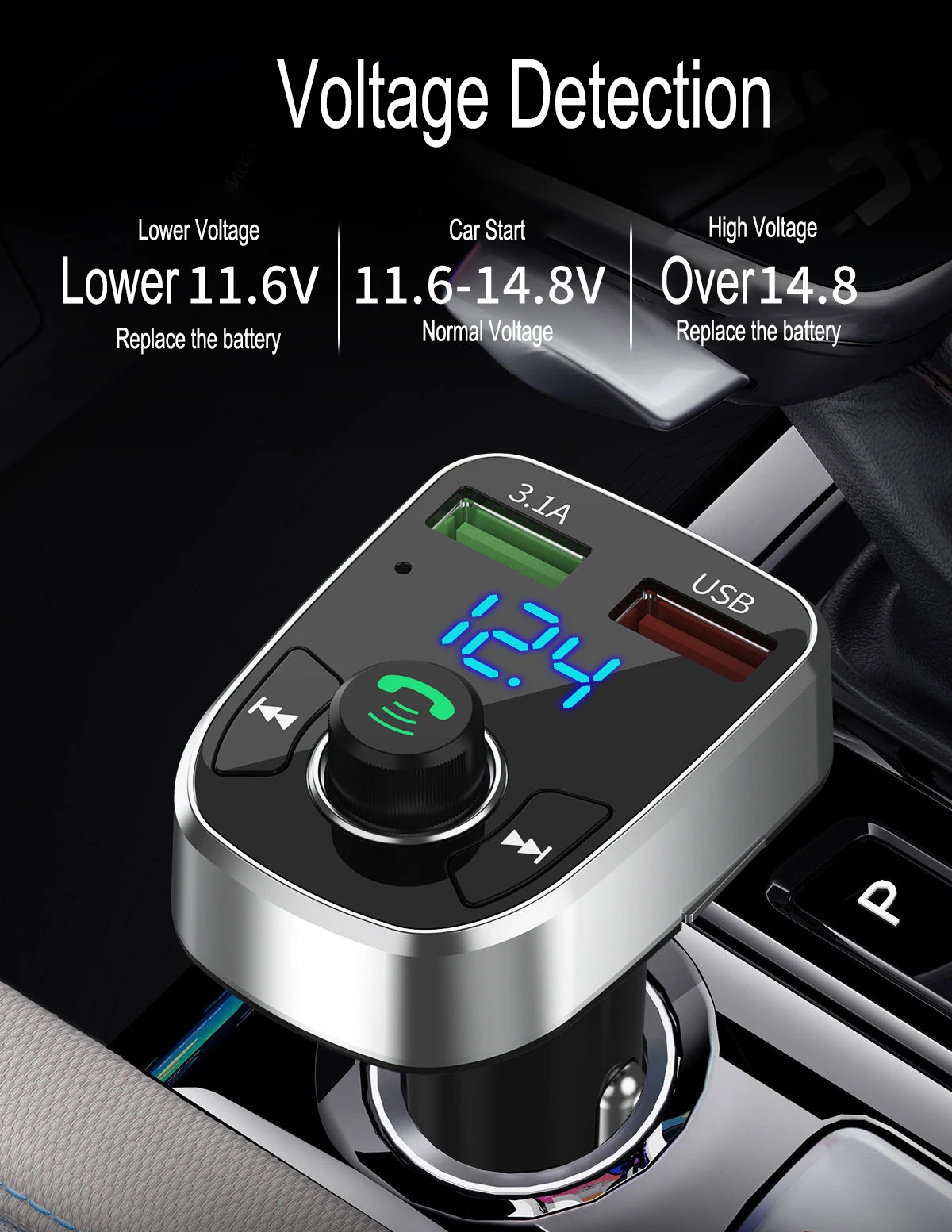 Характеристика: Версия Bluetooth: 5,0 Эффективное расстояние: 10 м Расстояние запуска: <5 м Рабочее напряжение: DC12-24V Выходное напряжение: 5 В ± 0,3 В Выходной ток: 3.1A Частота передачи: 87,5-108 Гц Дисплей: синий цифровой дисплей трубки Поддержка расширения: u-диск/tf-карта ≤ 64G Посылка: 1 шт. * Автомобильное зарядное устройство (Без розничной коробки)